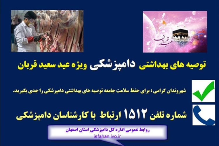 توصیه های بهداشتی اداره کل دامپزشکی استان اصفهان ویژه عید سعید قربان سال 1401