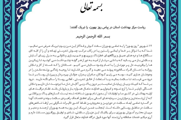 🔰 در راستای تکریم و بزرگداشت بهورزان زحمتکش، روز دوازدهم شهریور ماه، با عنوان روز بهورز، نامگذاری شده است.
