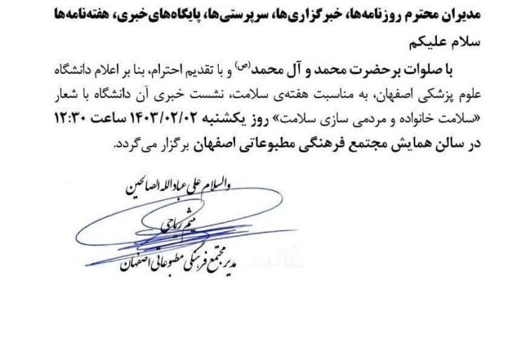 🔹 نشست خبری دانشگاه علوم پزشکی اصفهان با شعار «سلامت خانواده و مردمی سازی سلامت»