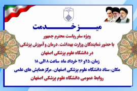 میز خدمت ویژه ریاست محترم جمهور با حضور نمایندگان وزارت بهداشت ، درمان و آموزش پزشکی در دانشگاه علوم پزشکی اصفهان