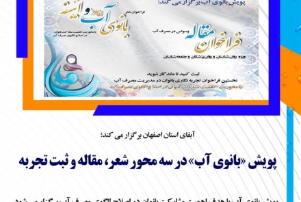 این پویش در سه بخش شب شعر"بانوی آب و آیینه"، فراخوان مقاله با موضوع وسواس در مصرف آب و ثبت تجربه بانوان در زمینه مدیریت مصرف آب برگزار می شود.