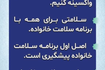 برنامه ملی سلامت خانواده و نظام ارجاع با افزایش سواد سلامت، خانواده و جامعه مان را واکسینه کنیم. سلامتی برای همه با برنامه سلامت خانواده اصل اول برنامه سلامت خانواده، پیشگیری است. برنامه سلامت خانواده ارجاعی صحیح به سوی سلامتی است.